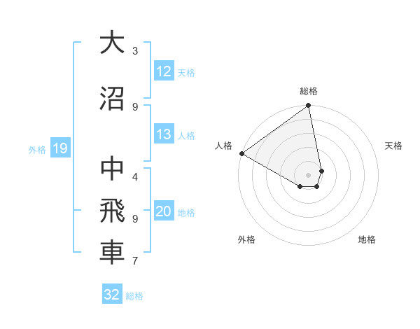 大沼 中飛車さんを姓名の画数から五運を鑑定
