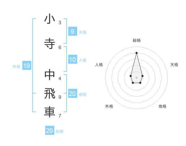 小寺 中飛車さんを姓名の画数から五運を鑑定