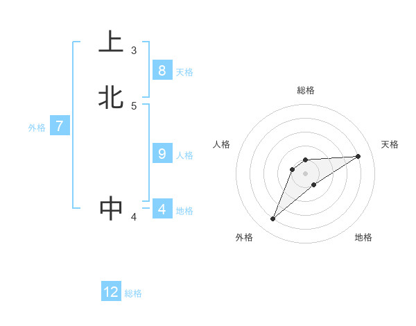 上北 中さんの天格は8画の4点!