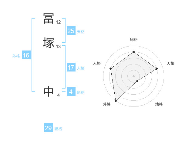 冨塚 中さんの総格は29画の4点!