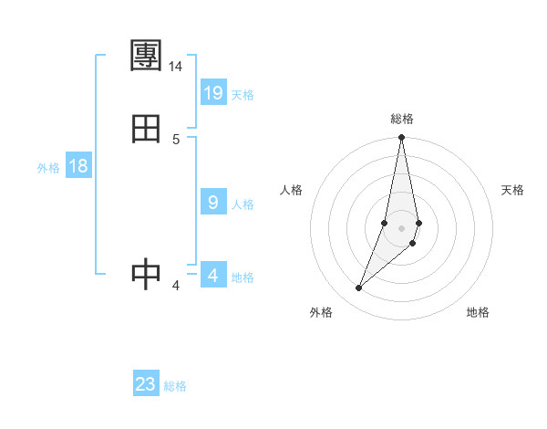 團田 中さんの総格は23画の5点!