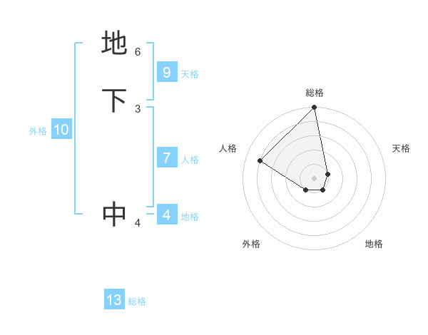 地下 中さんの総格は13画の5点!