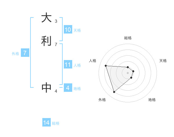 大利 中さんの総格は14画の1点!