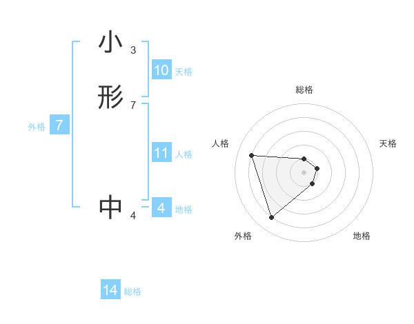 小形 中さんの総格は14画の1点!