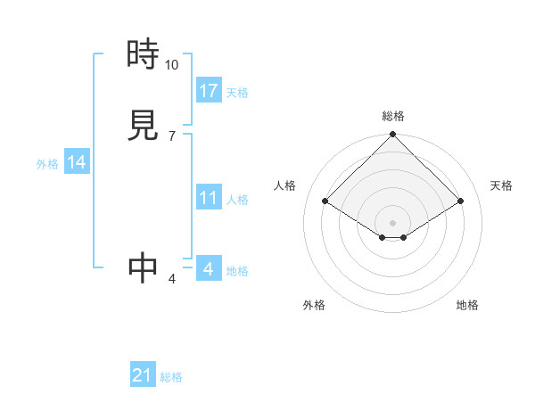 時見 中さんの総格は21画の5点!