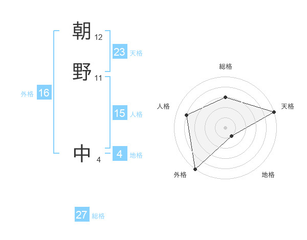 朝野 中さんの総格は27画の3点!