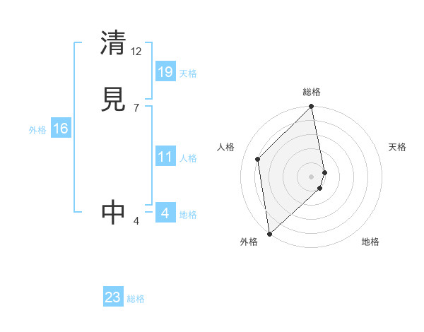 清見 中さんの外格は16画の5点!