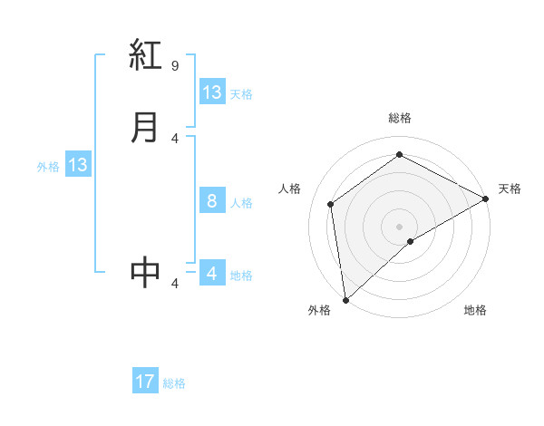 紅月 中さんの天格は13画の5点!