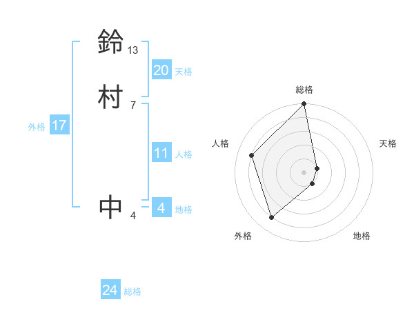 鈴村 中さんの外格は17画の4点!