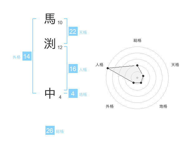 馬渕 中さんの総格は26画の2点!
