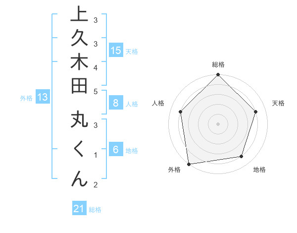上久木田 丸くんさんを姓名の画数から五運を鑑定