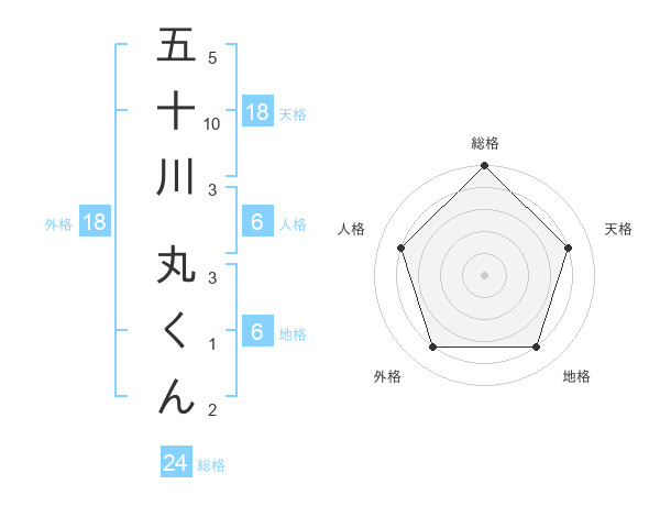 五十川 丸くんさんの総格は24画の5点!