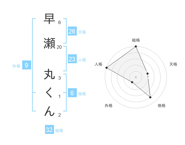 早瀬 丸くんさんの総格は32画の5点!