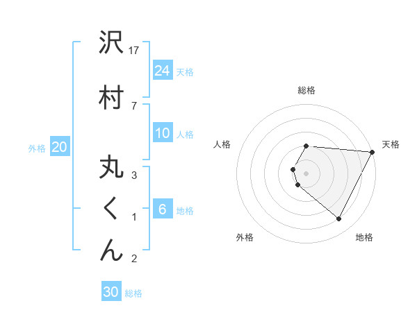沢村 丸くんさんを姓名の画数から五運を鑑定