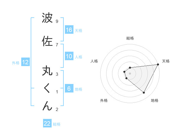 波佐 丸くんさんを姓名の画数から五運を鑑定