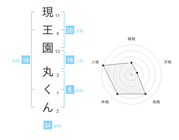 現王園 丸くんさんを姓名の画数から五運を鑑定