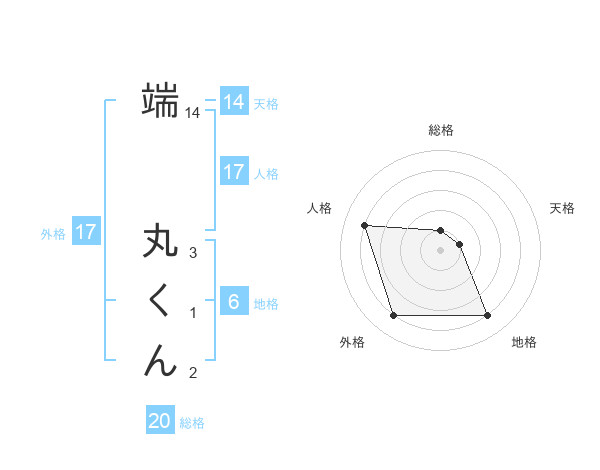 端 丸くんさんの総格は20画の1点!