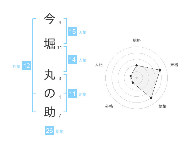 今堀 丸の助さんを姓名の画数から五運を鑑定