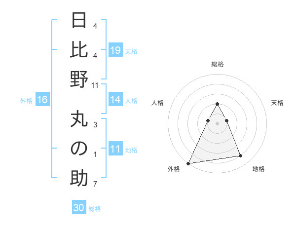 日比野 丸の助さんを姓名の画数から五運を鑑定