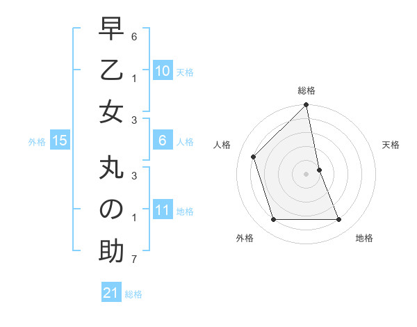 早乙女 丸の助さんを姓名の画数から五運を鑑定