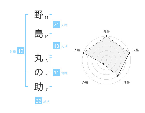 野島 丸の助さんを姓名の画数から五運を鑑定