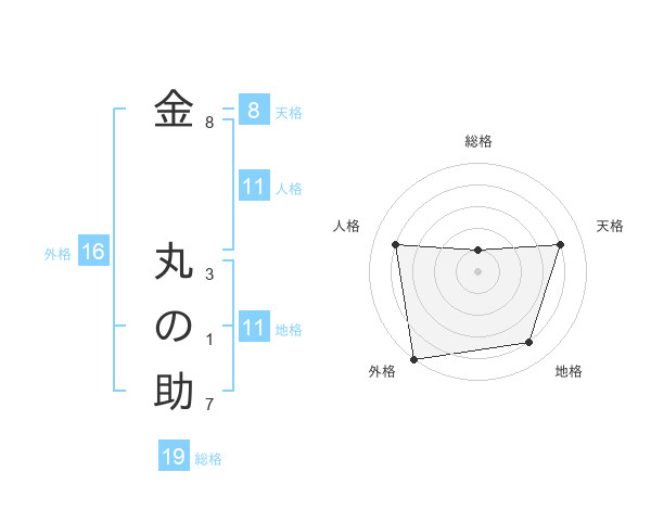 金 丸の助さんの総格は19画の1点!