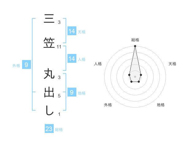 三笠 丸出しさんの総格は23画の5点!