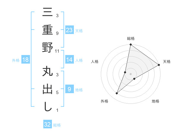 三重野 丸出しさんを姓名の画数から五運を鑑定