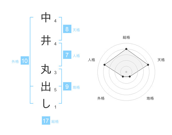 中井 丸出しさんの総格は17画の4点!