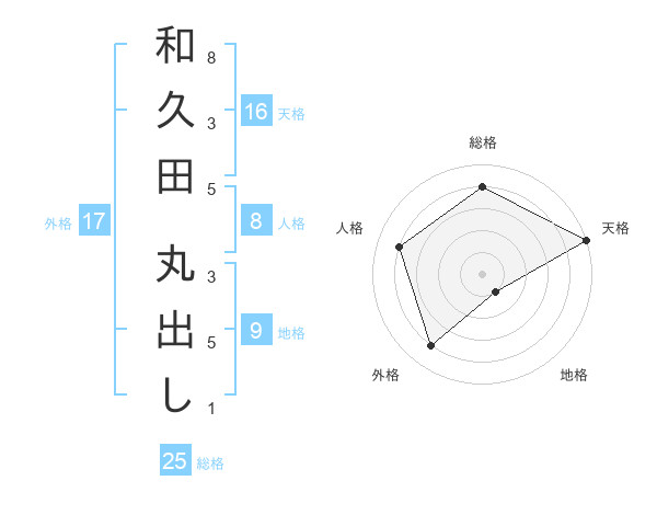 和久田 丸出しさんを姓名の画数から五運を鑑定