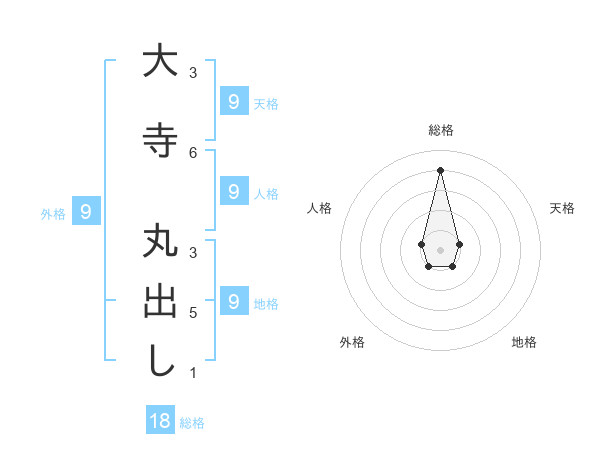 大寺 丸出しさんを姓名の画数から五運を鑑定
