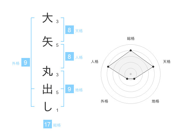 大矢 丸出しさんを姓名の画数から五運を鑑定
