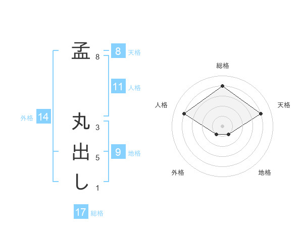 孟 丸出しさんを姓名の画数から五運を鑑定