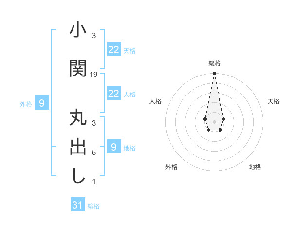 小関 丸出しさんを姓名の画数から五運を鑑定