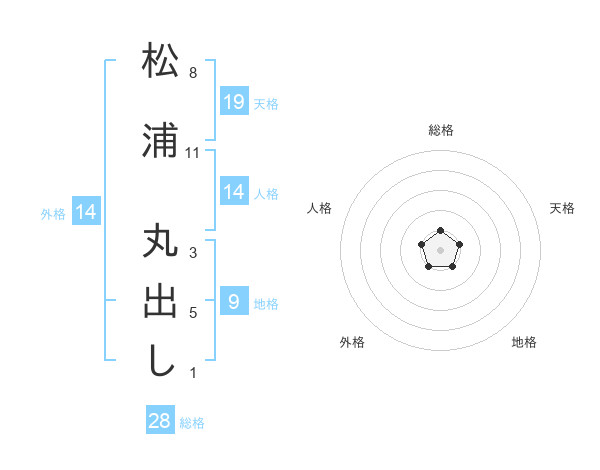 松浦 丸出しさんの総格は28画の1点!