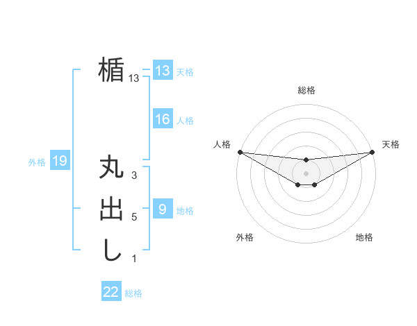 楯 丸出しさんの天格は13画の5点!