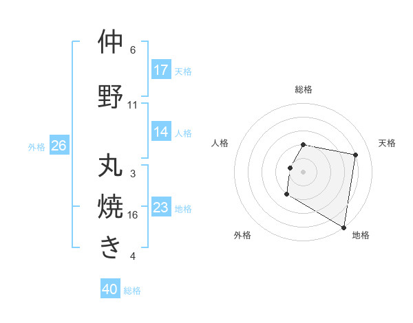 仲野 丸焼きさんの天格は17画の4点!