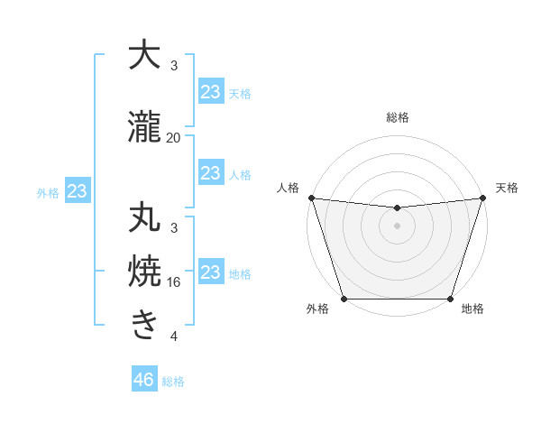 大瀧 丸焼きさんの外格は23画の5点!