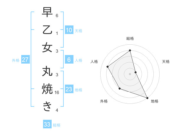 早乙女 丸焼きさんを姓名の画数から五運を鑑定