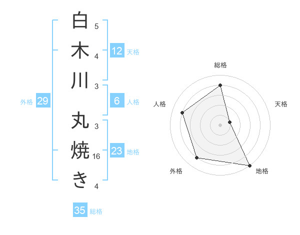 白木川 丸焼きさんを姓名の画数から五運を鑑定