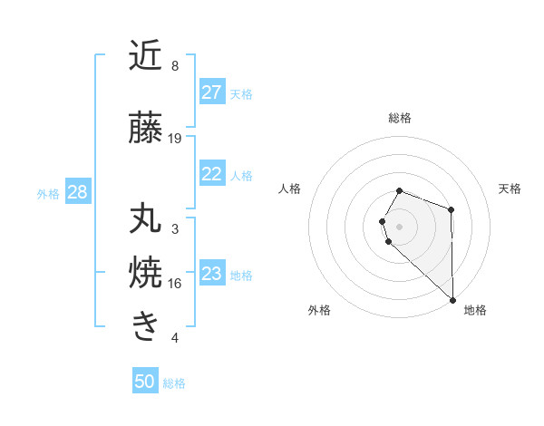 近藤 丸焼きさんを姓名の画数から五運を鑑定