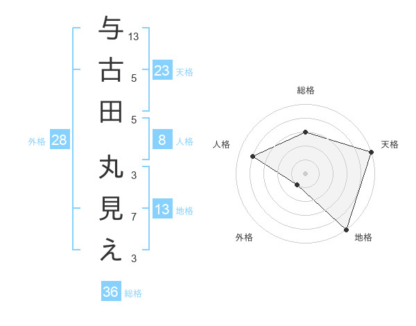 与古田 丸見えさんを姓名の画数から五運を鑑定