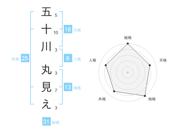 五十川 丸見えさんの総格は31画の5点!