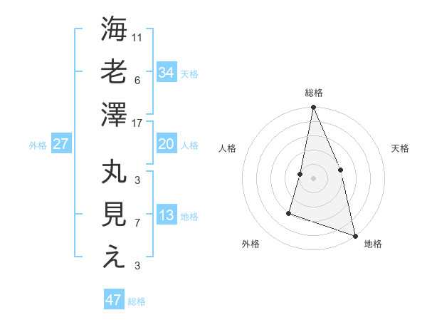 海老澤 丸見えさんを姓名の画数から五運を鑑定