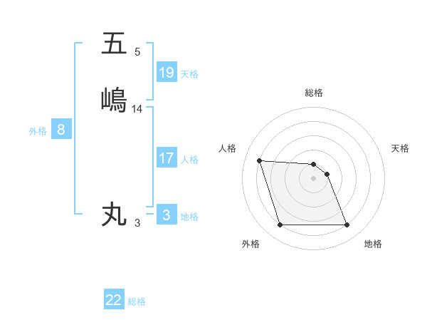 五嶋 丸さんを姓名の画数から五運を鑑定