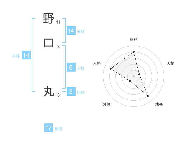野口 丸さんの総格は17画の4点!