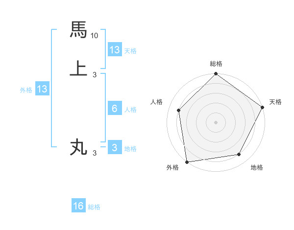 馬上 丸さんの天格は13画の5点!