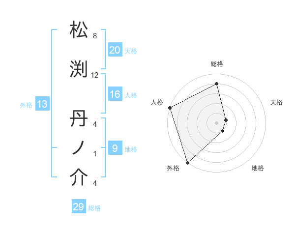 松渕 丹ノ介さんの外格は13画の5点!