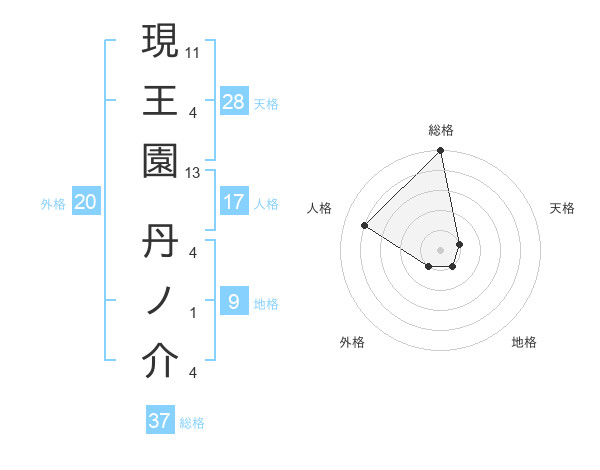 現王園 丹ノ介さんを姓名の画数から五運を鑑定