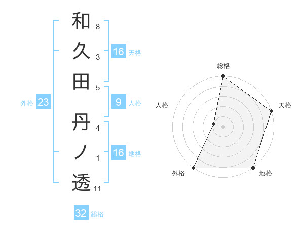 和久田 丹ノ透さんを姓名の画数から五運を鑑定